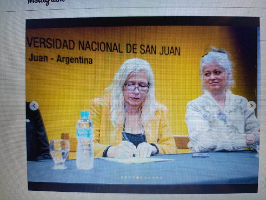 De izquierda a derecha : Diectora del Instituto de Teoría, Historia y Critica del Diseño Nello Raffoy Coordinora Nodo San Juan RAP, Mgst. Ma. Cristina Monfort – Decano FADU UNSJ. Carlos Herrera – Rector UNSJ Mag. Ing. TADEO BERENGUER – Vice Rectora Dra. ANALÍA PONCE, Presidente Red Argentina del Paisaje Mgst. Maria Isabel Pèrez Molina – Representate técnica Obs.yLAb. Paisaje cultural de los Valles Andinos Centrales Dra. Arq. Lorena Mancini Marchesi
